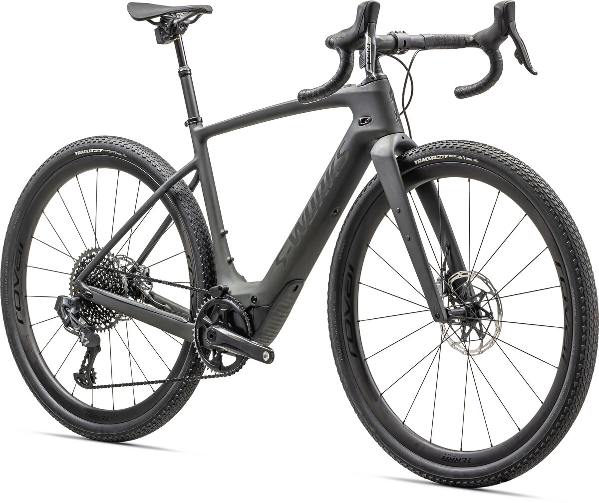 Front: Roval Terra CLX II, 25mm internal width, 32mm depth, 21h, Tubeless ready, Roval LFD hub with ceramic SINC bearings, Centerlock disc, DT Swiss Aerolite spokes Rear: Roval Terra CLX II, 25mm internal width, 32mm depth, 21h, Tubeless ready, Roval LFD hub with ceramic SINC bearings, Centerlock disc, DT Swiss Aerolite spokes |