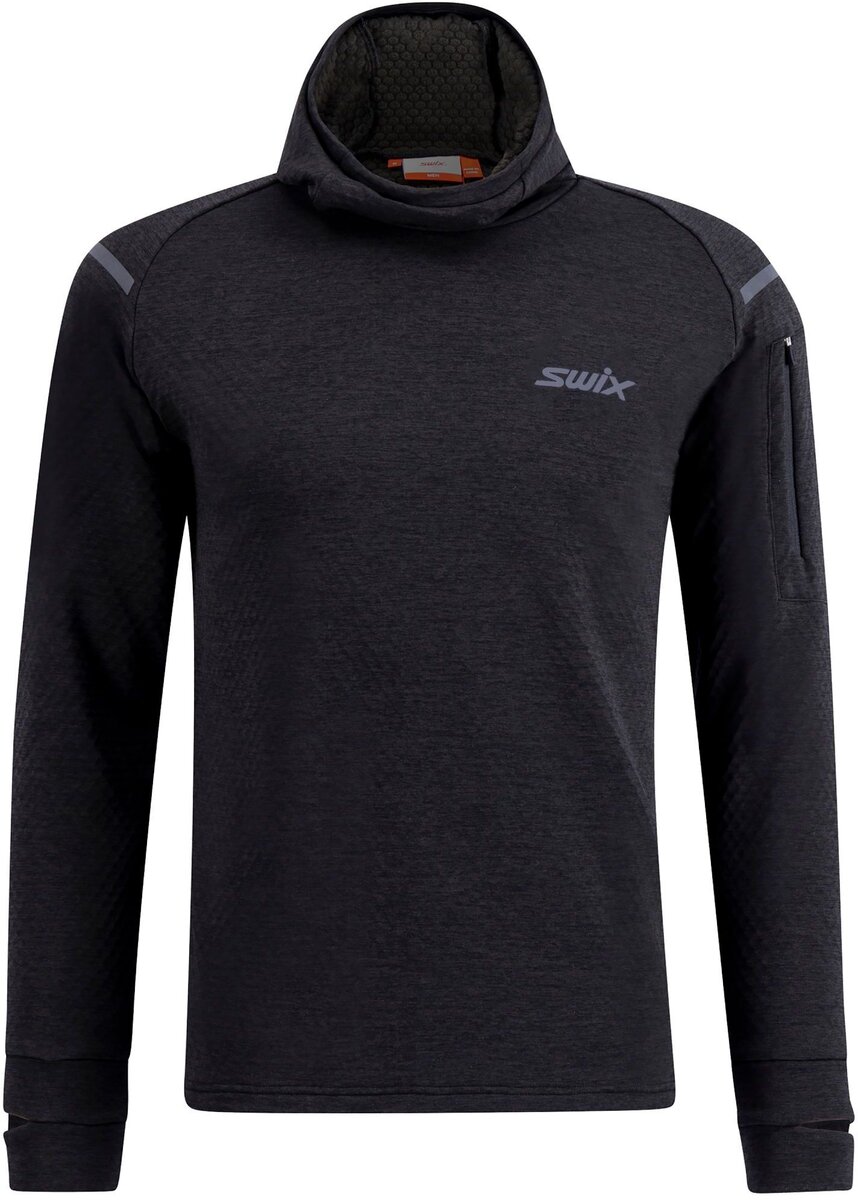 Discover the ultimate in comfort and performance with our hooded midlayer. Crafted from 4-way stretch fabric with a brushed backside, it offers exceptional softness and flexibility. The elastic-bound hood provides a snug, secure fit, while the zippered upper sleeve pocket keeps essentials close at hand. Watch-compatible cuffs allow easy access to your device, and reflective details ensure visibility in low-light conditions. Perfect for layering, this midlayer is designed for both style and functionality on all your active adventures.